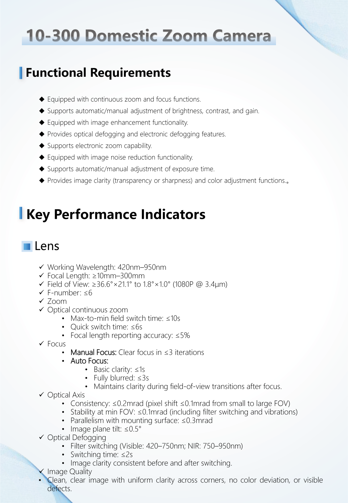 Continuous zoom, manual focus, one key focus, fog enhancement, and focal length feedback function