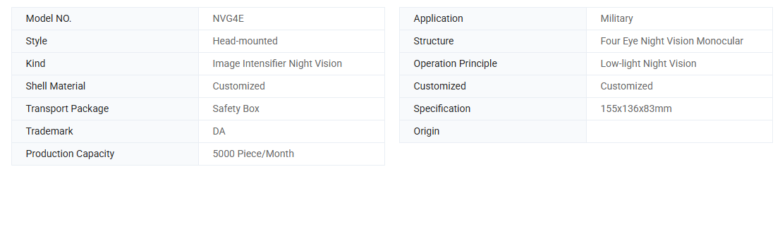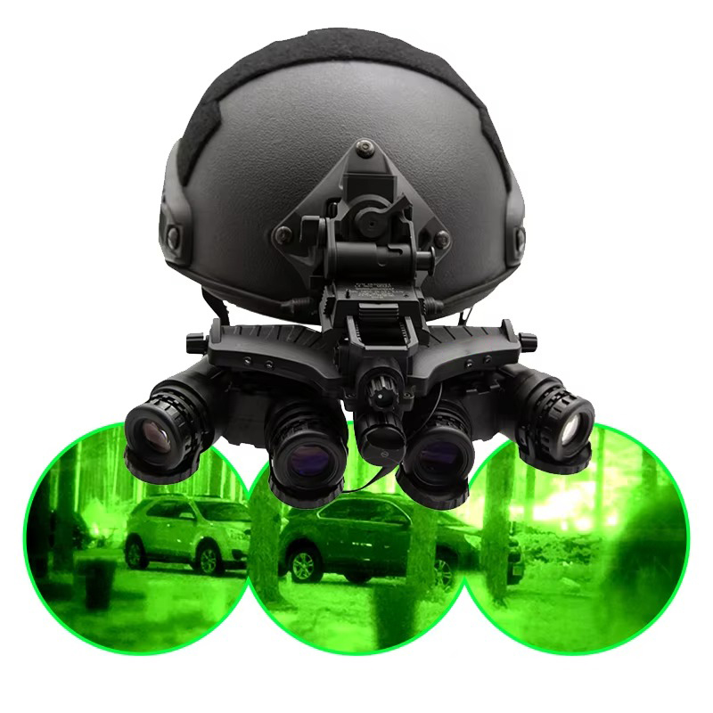 全景夜视镜采用视场拼接及小型化装置技术,使水平视野扩大两倍以上,夜视信息量大幅增加,无需转头即可观察更大视野。辅以战术头盔、红外战术手电、红外激光指示器、红外识别封条、红外识别灯等,可大幅提高夜间作战效能,遂行特种侦察、突袭、伏击、反恐、情报收集、抓捕俘虏等任务。