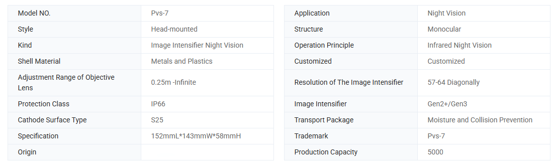 双目夜视镜采用全铝合金外壳,坚固耐用。配备高性能Gen2+像增强管,内置红外照明器,光线明亮保护、翻转开关等功能。具有可靠、卓越的性能、紧凑的尺寸、并且重量超轻。